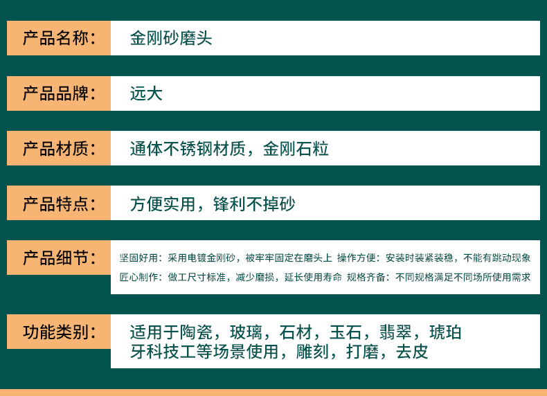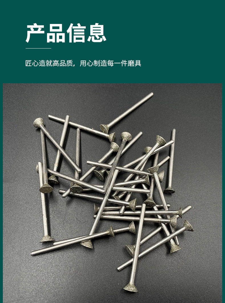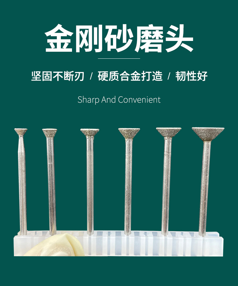 金剛石磨針金剛砂磨頭玻璃石頭刻字玉石開(kāi)窗去皮雕刻2.35mm柄徑